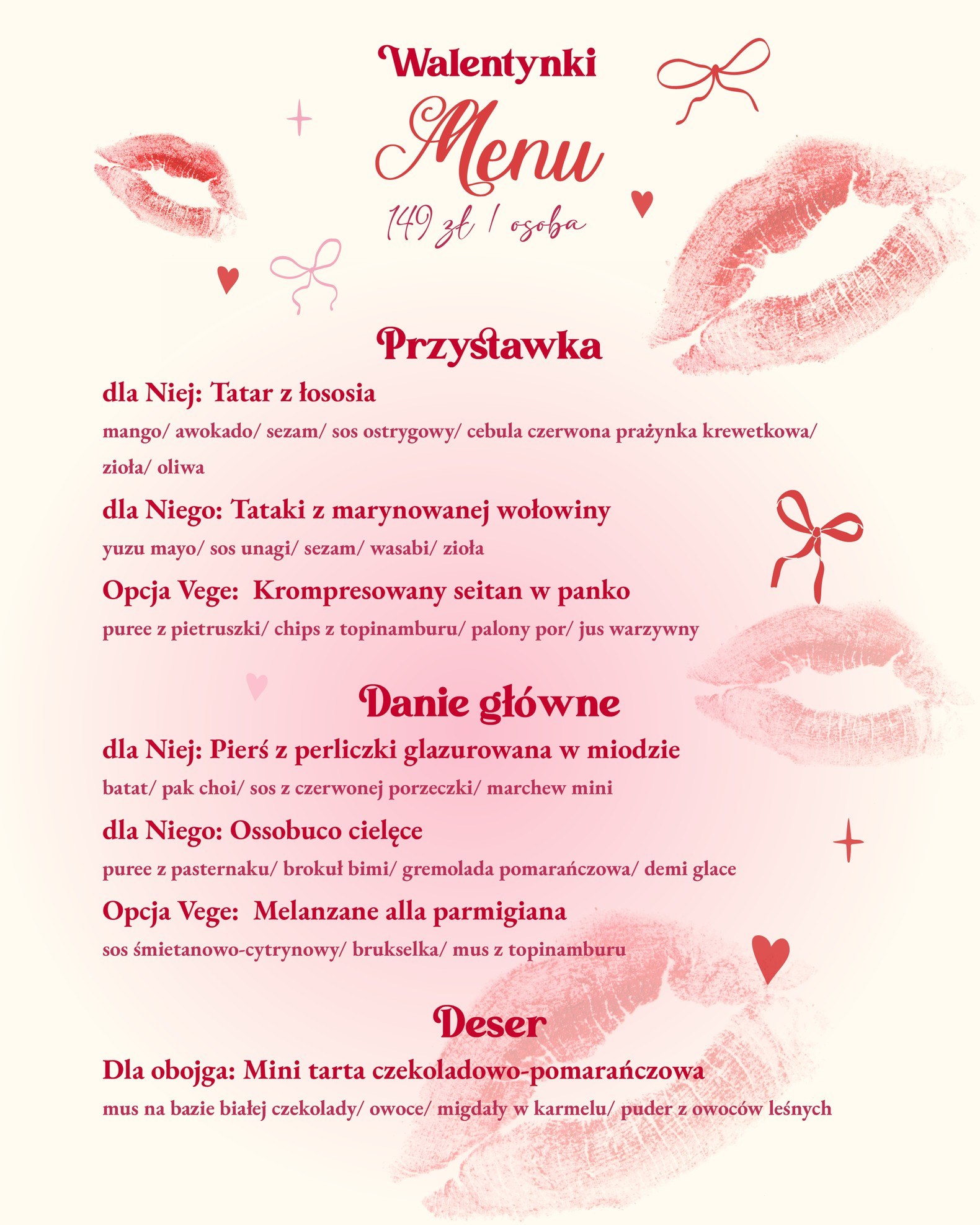 Zapraszamy na romantyczną kolację walentynkową w Restauracja Aurora — wieczór pełen smaków, nastrojowego światła i celebracji we dwoje. Przygotowaliśmy specjalne Walentynkowe Menu (149 zł / osoba), w którym każdy znajdzie coś dla siebie: propozycję dla Niej, dla Niego oraz opcję vege.